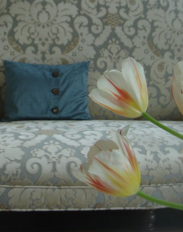 I turned and there she sat. Although threadbare and out of date, her outfit was an elegant homage to the mistress of the house, her bone structure strong and proud. Here was the backdrop of so many events of my life… from whispered secrets to shared birthday celebrations. Photos of all my prom dates were captured in her heart back curves.